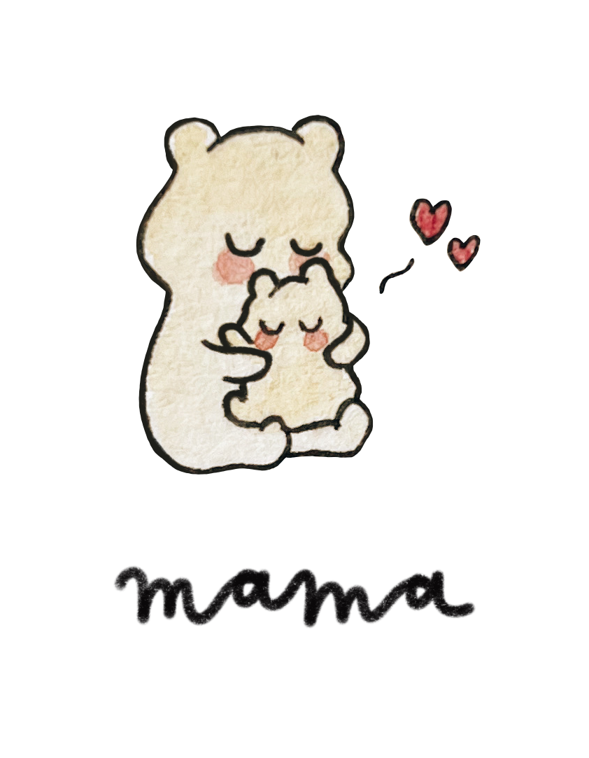 The best kind of embrace: a warm hug from Mom. Perfect for the Mama in your life this Mother's Day! Featuring my original watercolor painting of Mama Hammy and Baby Hammy.